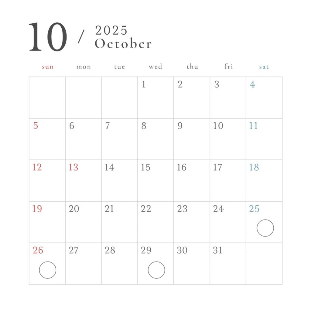 ※カレンダー以外の日時でも承っております。