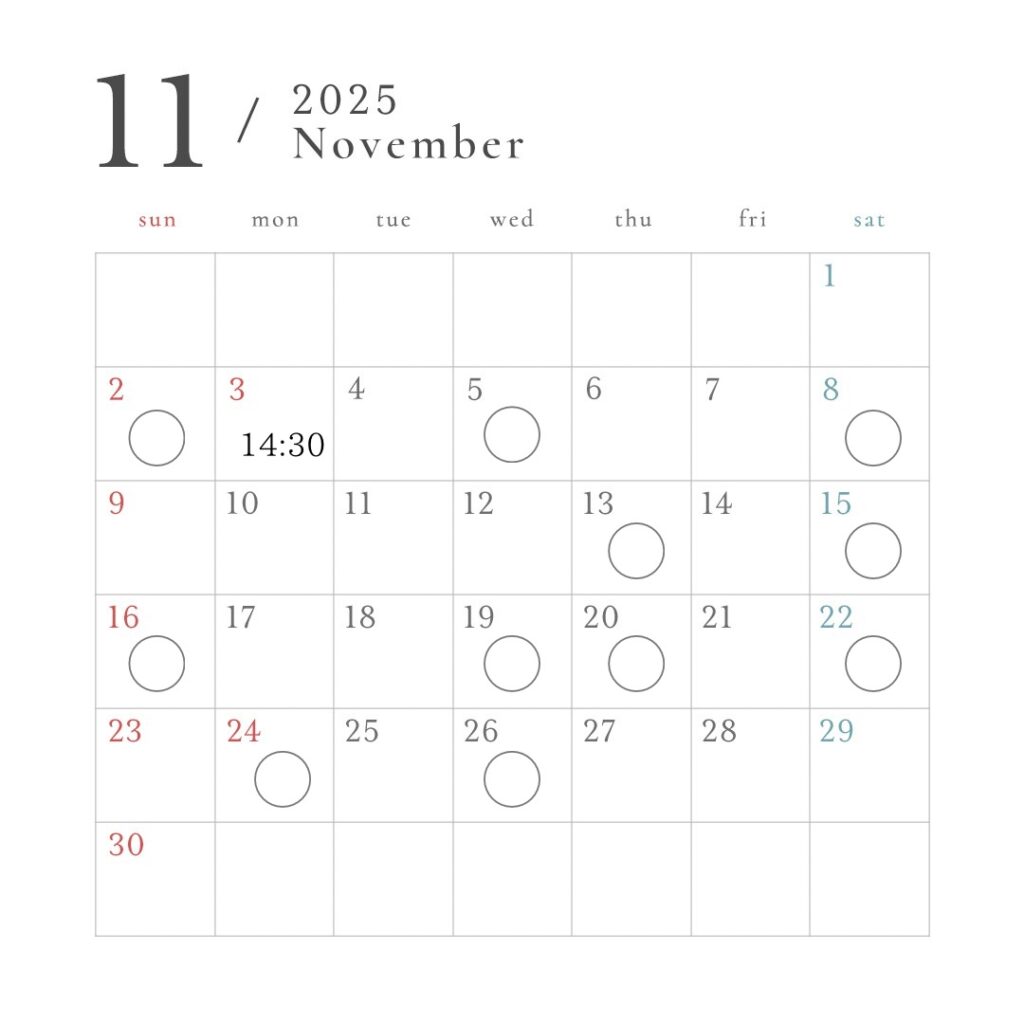 ※カレンダー以外の日時でも承っております。